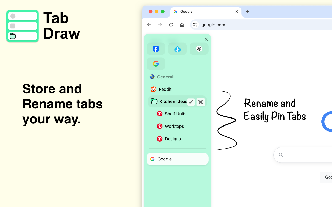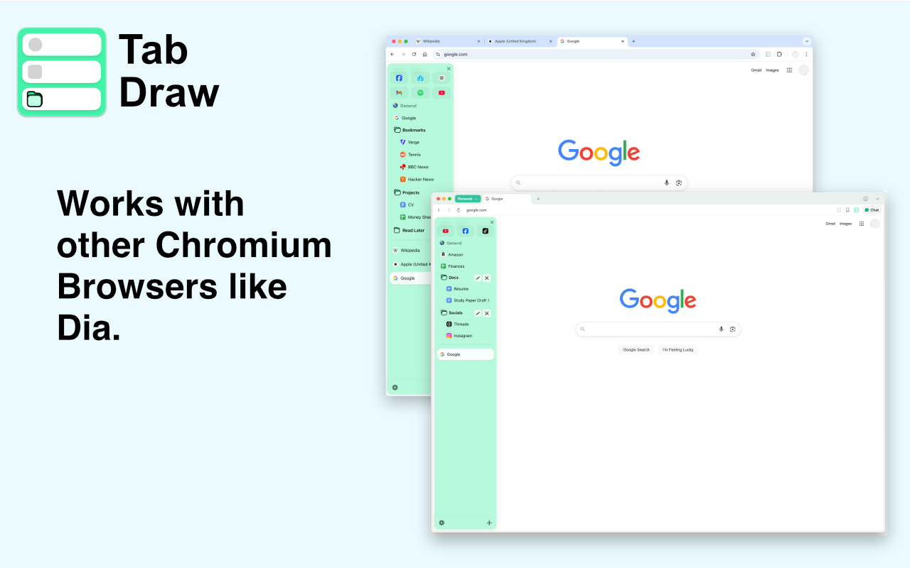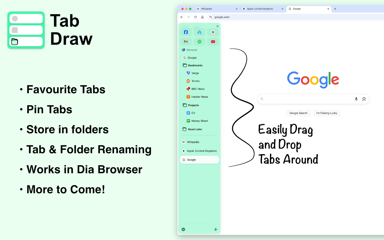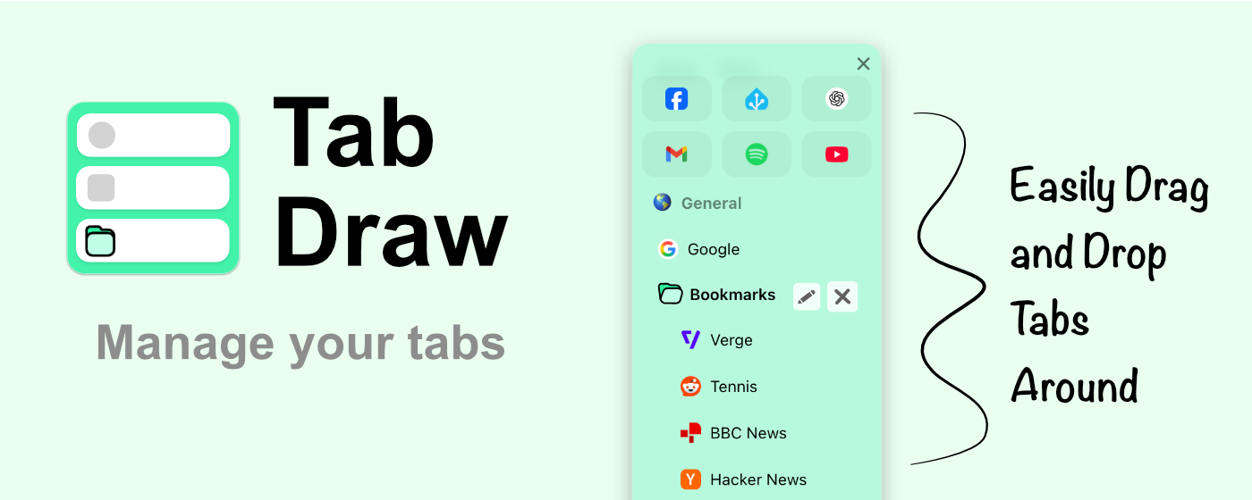 Tab Draw is a vertical sidebar extension inspired by Arc Browser’s sidebar, designed to help you quickly organise your tabs and boost productivity while browsing the web.