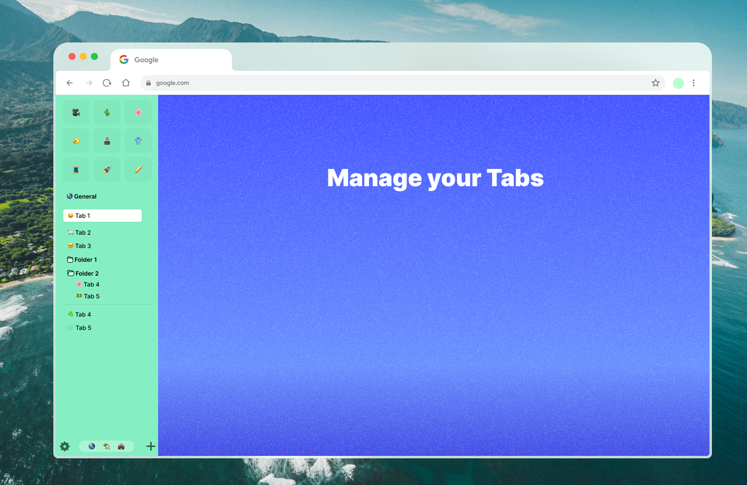 • Drag and drop: Easily rearrange tabs and folders